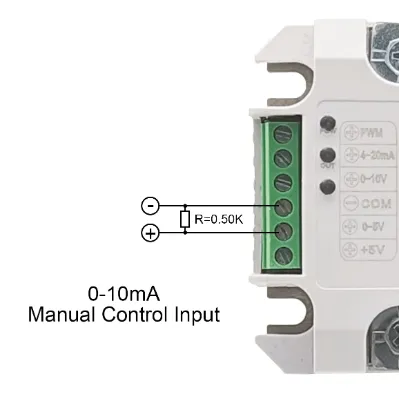 0–10mA Manual Current ControlAccepts a 0–10mA manual current input. |