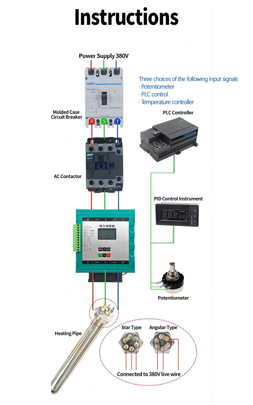 When wiring the load in Y-type configuration, the center point must not be connected to the neutral line, otherwise the SCR may lose control.